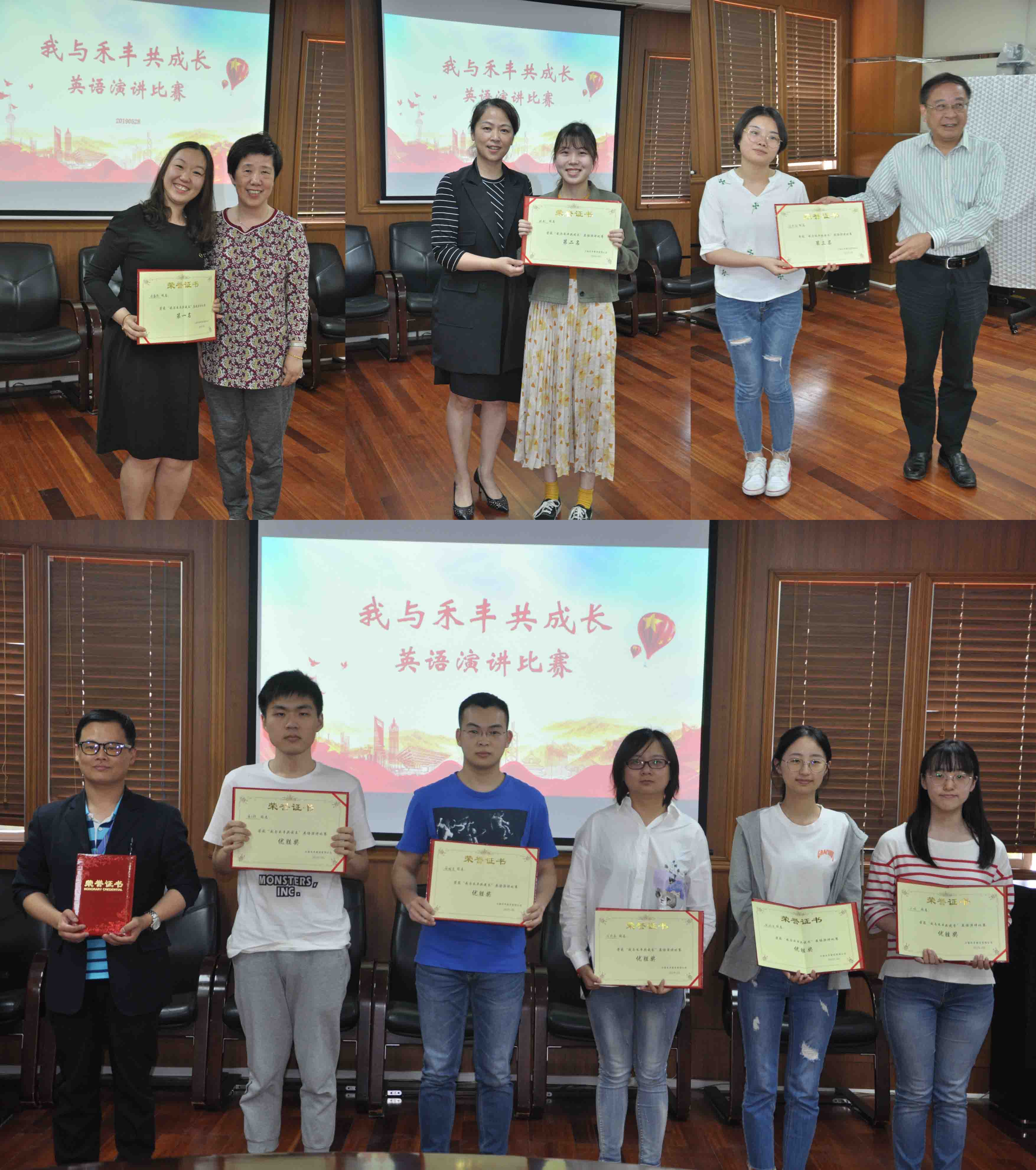 此次演講比賽的主題為“我與禾豐共成長”。來自各部門的9位參賽選手中有剛踏上工作崗位的新員工、有工作了幾年的老員工、也有工作了十幾年并在自己的職業生涯中闖出一番天地的資深員工。大家經過充分的準備,用英語說出了他們在禾豐的成長故事及對公司未來發展的希望。各位選手的故事不盡相同,但都表達出了他們對禾豐的過去和未來的積極看法。在經過3位公司領導和1位專業評委的打分后,最終決出了本次比賽的一、二、三等獎及優勝獎。