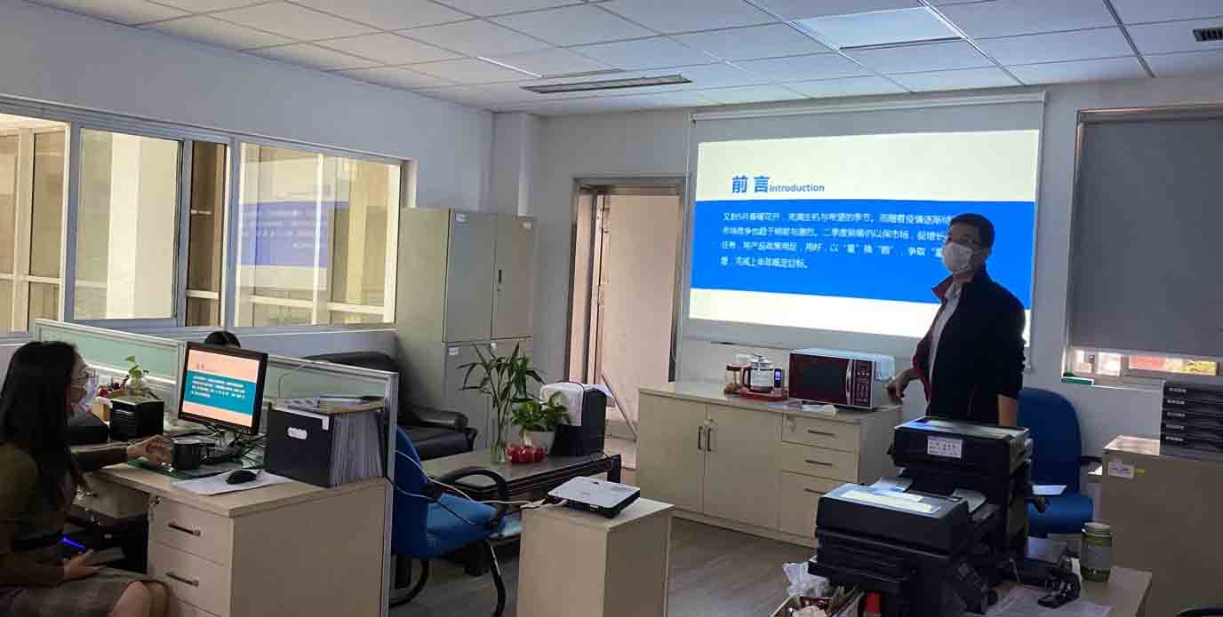 隨著疫情態勢逐漸趨于穩定,市場競爭也重回明朗與激烈。對此,銷售部尹助理提出二季度銷售仍以保市場,促增長為主要任務,靈活用好各項產品政策工具。在同期比較與重點產品追蹤兩項,尹助理花費了較大篇幅進行分析,引出了工作重點并對條線同仁們鼓勁加油。客服部施經理提到了條線的基礎管理工作,督促各地區完成好關賬。