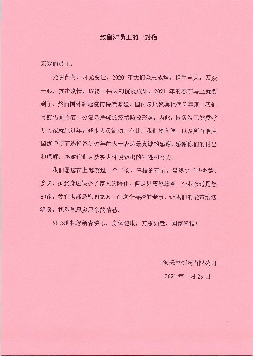 致留滬員工的一封信