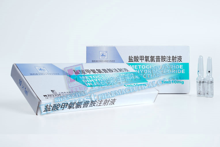 【成份】本品主要成份為鹽酸甲氧氯普胺,化學名稱為N-[(2-二乙氨基)乙基]-4-氨基-2-甲氧基-5-氯-苯甲酰胺。輔料濃鹽酸、無水醋酸鈉、亞硫酸氫鈉、注射用水。